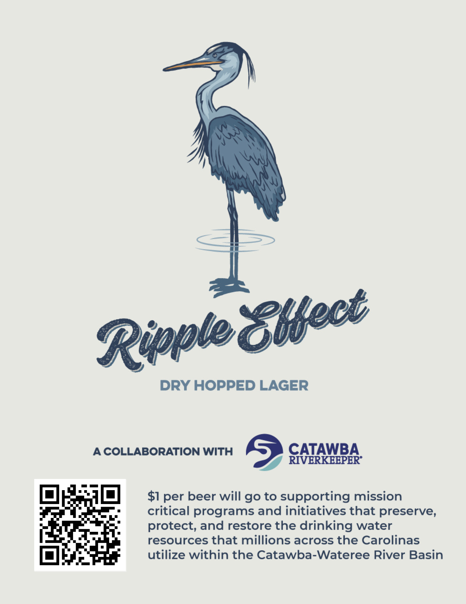 Ripple Effect is our latest dry-hopped lager, brewed with U.S.-grown Saaz and Hallertau Blanc hops for a crisp, balanced flavor that honors the clarity and freshness of its source. With every pint poured, we’re donating $1 to the Catawba Riverkeeper Foundation to help fund their ongoing mission. Each sip represents more than great beer; it’s a contribution to the ripple effect of change happening in our own backyard.